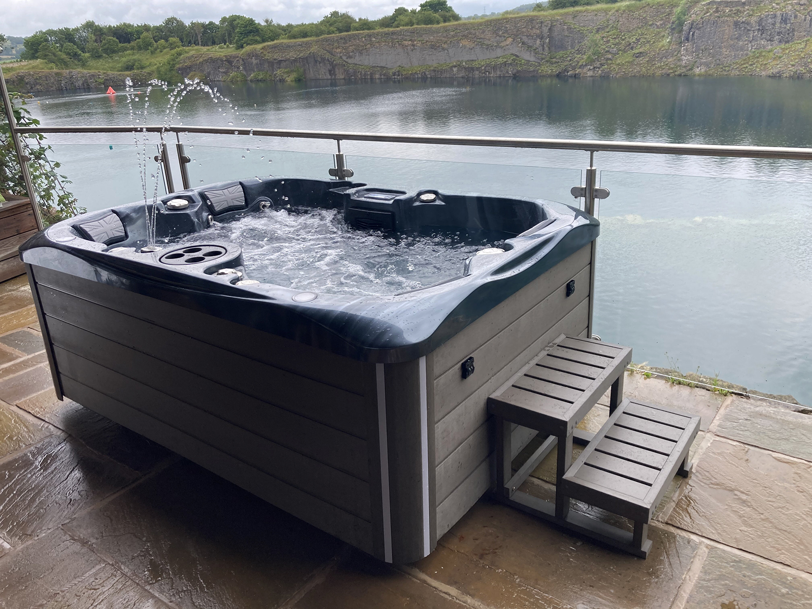 British Hot Tubs Lit Waterfall Table brings a whole new dimension to hot tubbing. This must-have accessory keeps your drinks, snacks, and games close while you enjoy your hot tub! As well as this, it is certainly an eye-catching centrepiece.